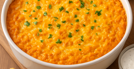 Bake at 200°C (400°F) for 30–35 minutes or until golden on top.