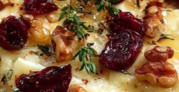 Crispy Flatbread with Brie, Cranberries & Toasted Walnuts with a Hot Honey Drizzle