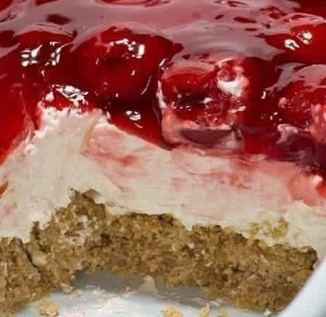 Classic Cherry Delight is a creamy, no-bake dessert made with layers of graham cracker crust, a sweet cream cheese filling, and cherry pie filling. Here’s a quick and easy recipe for this timeless treat: