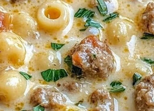 Toss the cooked sausage back into the saucepan with the soup and toss to mix. Taste and add salt and pepper as needed.