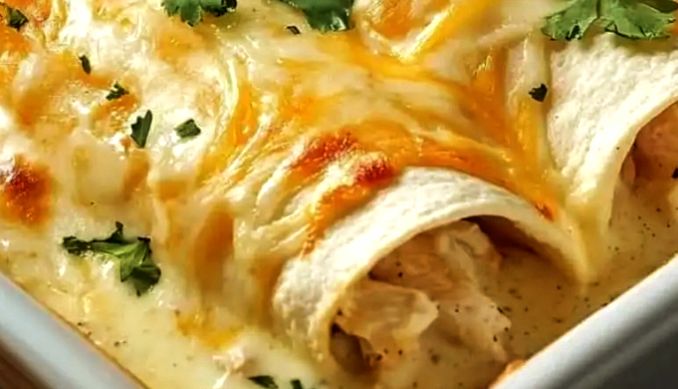 Fill each tortilla with about 2-3 tablespoons of the chicken mixture, roll tightly, and place seam-side down in the baking dish.
