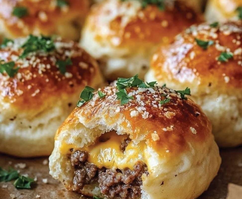 Enjoy these Garlic Parmesan Cheeseburger Bombs as a crowd-pleasing appetizer or a fun family meal! 🍔🧄✨