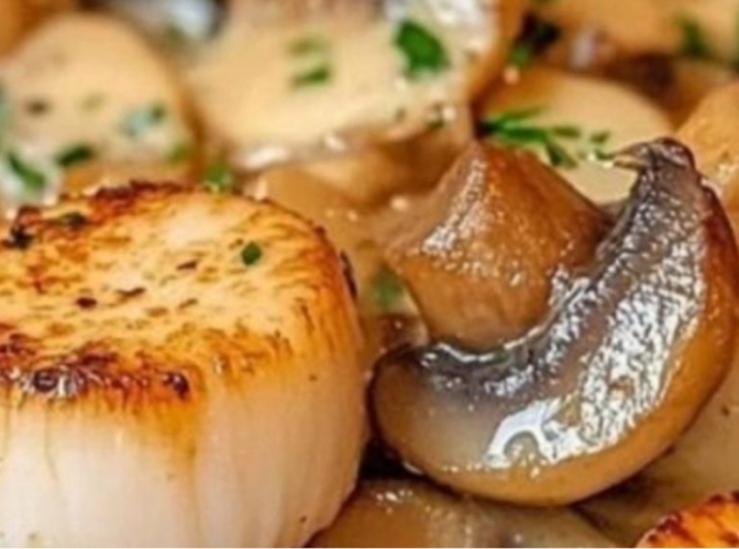 2. ✅ Add shrimp and scallops, cook 2–3 minutes until lightly golden.