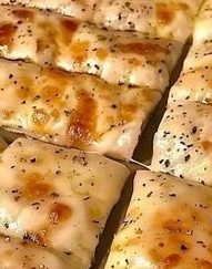 - Before you bake, cut the cheese covered pizza crust into 16 equal rectangles using a pizza slicer or large knife.