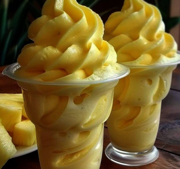 Enjoy your homemade pineapple soft-serve ice cream, a delightful treat that brings a taste of the tropics to your home!