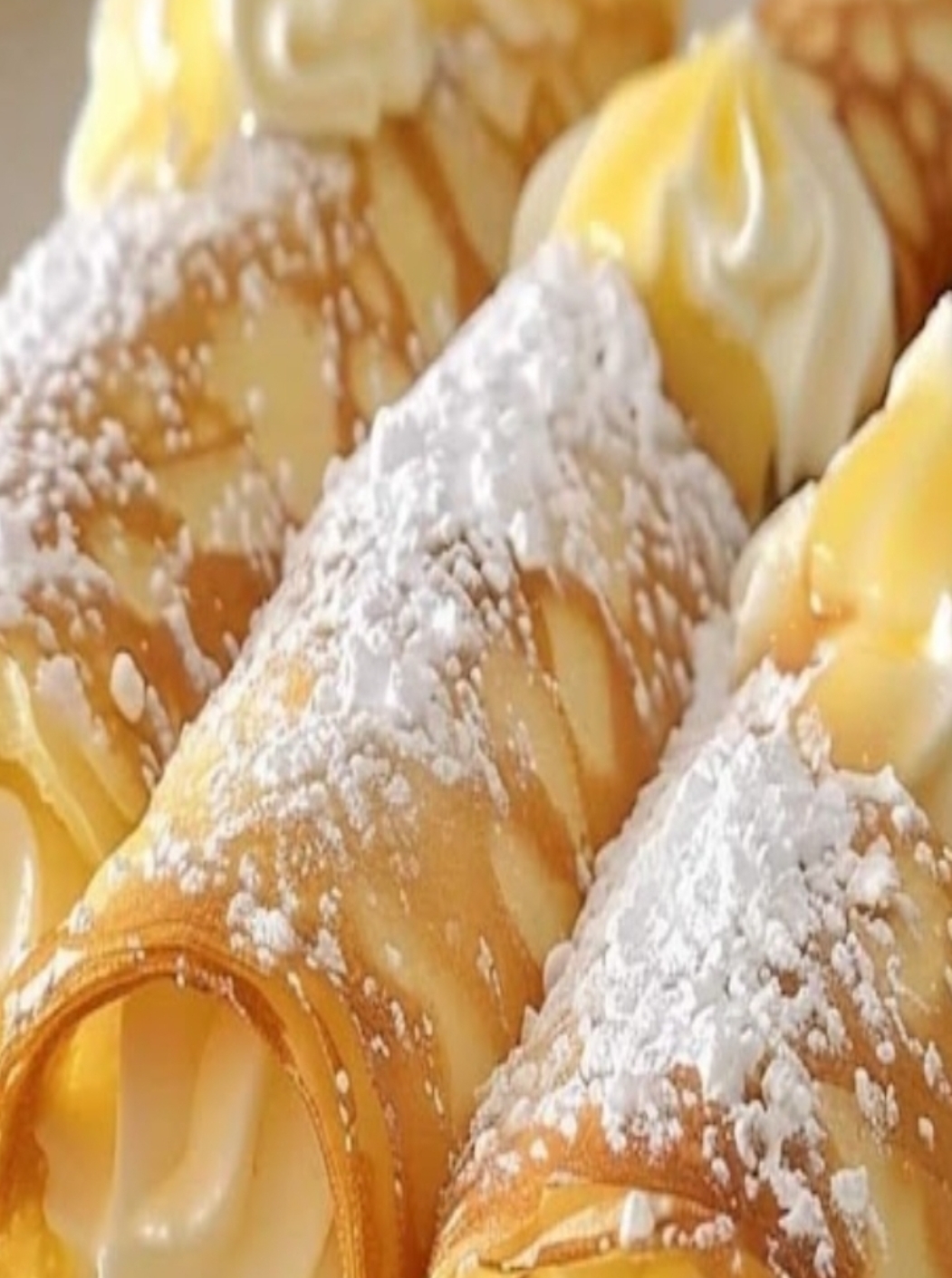 Lemon cream-filled crepes are a light and refreshing dessert or breakfast option that combines the delicate texture of thin crepes with a zesty lemon cream filling. The balance of sweetness and citrus makes these crepes a delightful treat, perfect for any occasion.