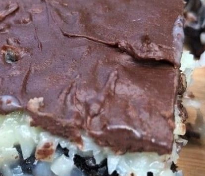 Enjoy your homemade Mounds Cake with a rich coconut filling and decadent chocolate topping!