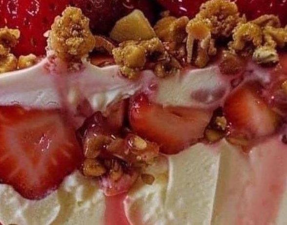 Fold in mashed banana mixture and chopped strawberries gently until evenly distributed.