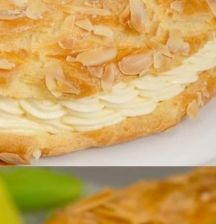 2. Place one layer on a serving plate or cake stand. Spread a generous layer of almond cream filling on top.